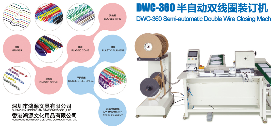 深圳鴻源文具有限公司是一家專業(yè)生產(chǎn)塑料單線圈、包膠YO雙線圈、包膠鐵單線圈、包膠掛鉤及膠梳等活頁裝訂材料和裝訂機械的工廠,本廠產(chǎn)品品質(zhì)優(yōu)良、價格合理,交貨快捷,產(chǎn)品已通過ISO9001國際品質(zhì)體系認(rèn)證,并通過SGS公司檢測,所有產(chǎn)品均達(dá)到歐美環(huán)保要求.